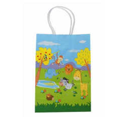 Schattige papieren cadeautasje met verschillende dieren erop. Bijvoorbeeld leuk als goodiebag na een kinderfeestje De tasjes zijn 21 x 15 x 8 cm groot Prijs is per stuk
