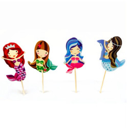Hippe zeemeermin prikkers, in vrolijke kleurtjes. Prik ze een krentenbol of cakeje en je hebt in een handomdraai een superleuke traktatie ! Je ontvangt 24 stuk, de prikkers worden in assorti uitvoeringen geleverd.