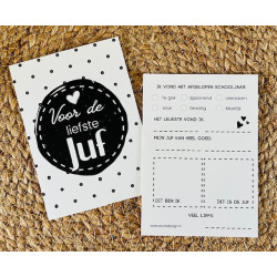 Met een flessenhanger maak je van een fles handzeep een hartstikke leuk kado. Maar ook van een fles wijn, prosecco, champagne, bier of frisdrank. Op de achterkant is er ruimte voor een persoonlijke boodschap. Bedank de juf voor het afgelopen schooljaar, of laat haar weten hoe blij je met haar...