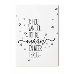 Lieve kaart, met de tekst 'i love you to the moon and back' ! Aan wie ga jij deze kaart geven ? Levertijd 1-3 werkdagen Afmeting: A6 Ontwerp: Studio Schatkist