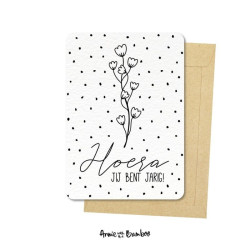 Vrolijke kaart in het zwart/wit met de tekst: "Hieperdepiep...