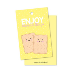 Enjoy the little things Superleuke kado labels Heb je ook de bijpassende kaarten, stickers en notitieblokjes gezien? Levertijd 1-3 werkdagen Afmeting: 55mm x 85 mm Ontwerp: Studio Schatkist
