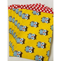 Leuke trakteerzakjes met een gezellig printje vol met uiltjes. Leuk detail, de binnenkant van het zakje heeft rood met witte stippen motief. Prijs is per 5 stuks Afmeting 12 x 19 cm