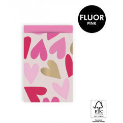 Kadozakjes Big hearts fluor pink 5 stuks 12x19 cm