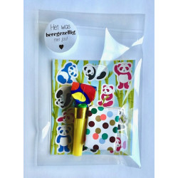 Super handige kant en klare afscheidstraktatie. Met leuke berenstickers. Ook geschikt als verjaardagstraktatie Inhoud: – een beren stickervel – een roltong – eventueel iets lekkers naar keuze ingepakt in een vrolijk kadopapiertje – zakje en bijvoorbeeld de sticker 'Het was bere-gezellig met jou!' – Inhoud 1 stuk De traktaties worden kant en klaar aan geleverd en na ontvangst klaar om uit te delen. Levertijd is ongeveer 2 a 3 werkdagen. Je hebt de keuze om de traktatie in plastic cellofaanzakjes te laten verpakken of pergamijnzakjes. Pergamijn ziet eruit als semi transparant papier, maar is gemaakt van 100% cellulose. Ze worden milieuvriendelijk geproduceerd en zijn volledig recyclebaar en zelfs composteerbaar. Leuk en duurzaam!