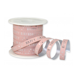 Lint Happy Birthday cerise Breedte: 10 mm Prijs is per 5 meter