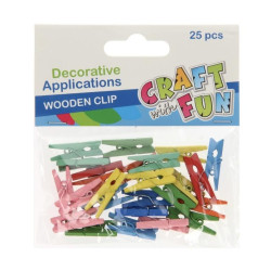 Setje met 25 houten mini knijpertjes in alle kleuren van de regenboog. Lengte van de knijpertjes is 2.5 cm