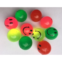 Leuke smiley stuiterbal, verschillende kleuren worden door elkaar geleverd. Doorsnede van de stuiterbal is 2,5 cm Prijs is per stuk