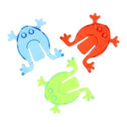 Grappige springkikkers! Probeer de kikker zover mogelijk te laten springen. Verschillende kleuren worden door elkaar geleverd. Prijs is per stuk. De kikkers zijn 9 cm lang. Ook leuk als afscheidskadootje met de tekst: ik spring naar de basisschool !!